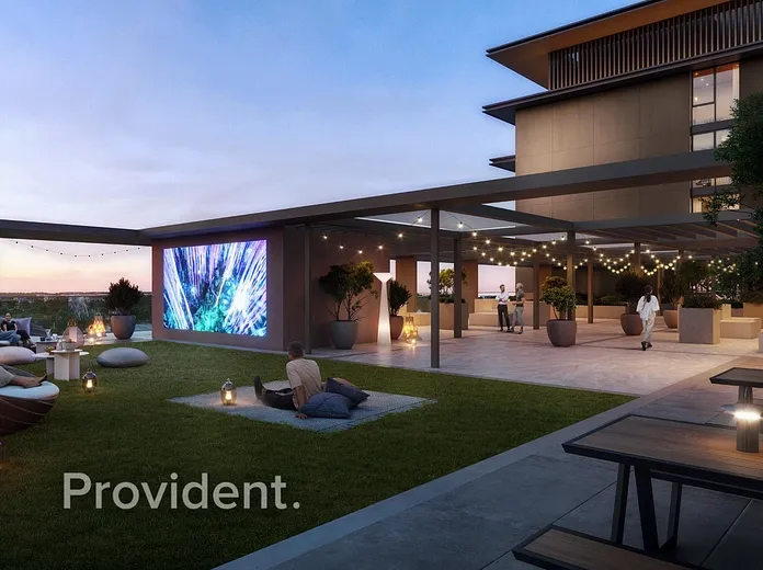 Residents have access to swimming pools, relaxation areas, an open-air cinema, sports courts, a yoga deck, jogging tracks, and a skate park.