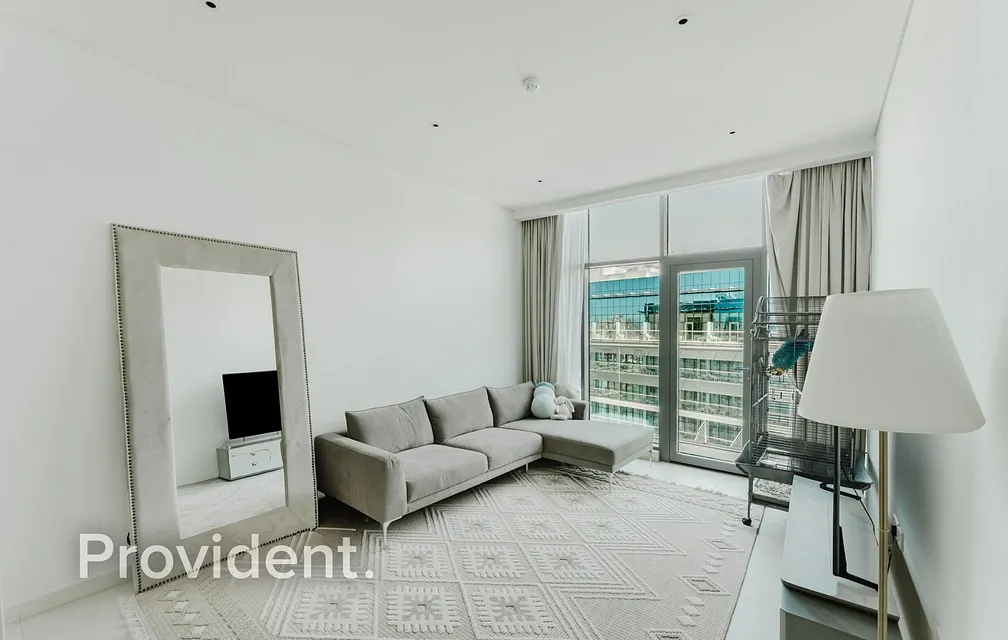 The unit is fully furnished and features high ceilings along with floor-to-ceiling windows, allowing for ample natural light and an enhanced sense of space. The layout is efficiently designed to provide both comfort and functionality, making it ideal for end-users and investors alike.