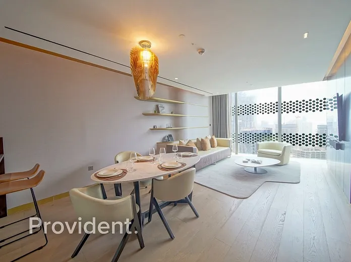 The Opus, an iconic development by Omniyat and crafted by the acclaimed architect Zaha Hadid, presents a collection of exquisitely furnished residences. The striking design features two interlocking structures forming a unique cube that appears to float above the ground. Adding to the allure, the development also includes the luxurious ME Hotel by Melia Group.