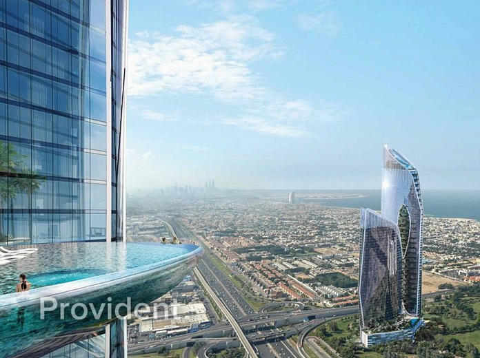 Introducing Safa Two by Damac, a stunning luxury development crafted in collaboration with the illustrious jewelry brand De Grisogono. Rising 83 stories, this architectural marvel takes inspiration from the allure of precious gems, with its striking ruby-shaped design. The centerpiece is a glass-edged swimming pool, and the rooftop is adorned with an indoor mist forest, an observatory, and terraces offering breathtaking views of the Dubai Water Canal and Business Bay.