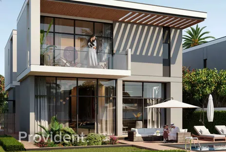 This gated community features four and five-bedroom villas, designed with an open and expansive layout that seamlessly integrates modern design elements.