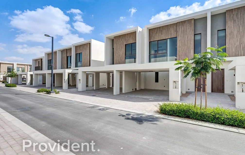 Provident Real Estate proudly presents this brand new 3-bedroom villa plus maid’s room for rent in Orania Cluster, The Valley. This brand new, bright villa is positioned in a back-to-back layout, near the community amenities, and features a corner kitchen layout. Offered unfurnished, it is ideal for families seeking modern living in a newly developed, family-oriented community.