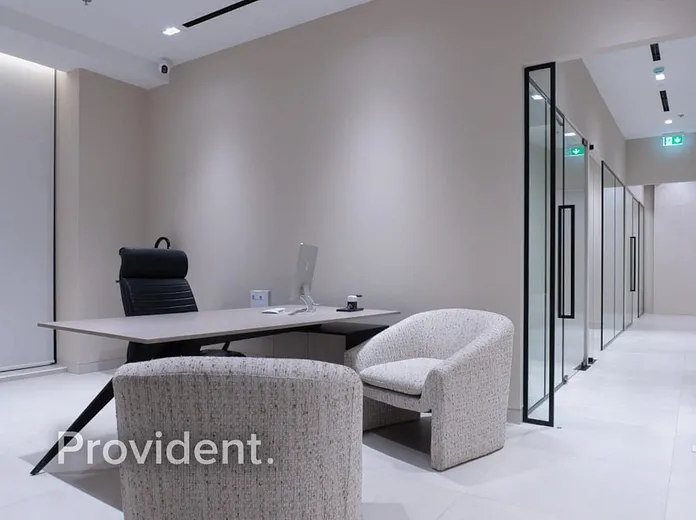 Premium luxury office space available for rent in a brand-new contemporary commercial building in Mirdif. This fully fitted office comes with high-end partitions and a modern layout, located in a calm, non-crowded area ideal for companies seeking a professional and comfortable working environment.